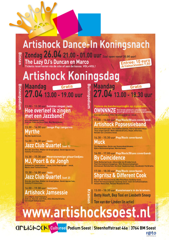 Artishock zorgt op Koningsnach zoals ook hierboven aangegeven daarnaast nog voor een Dance-In.